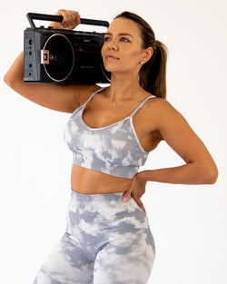 En elegant sport-bh i tidlös grå & vit nyans från vår Cloudy-kollektion, utrustad med flexibla band som erbjuder komfort under alla dina rörelser. De korsade banden över ryggen skapar inte bara ett stödjande grepp utan också en flexibel känsla. Cloudy-kollektionen är säker på att snabbt bli din nya favorit i garderoben, med dess perfekta balans mellan stil och funktionalitet.